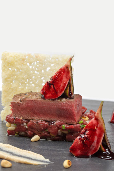 Tatar und Rücken vom Reh|Pinenkernpüree|Feigen|Parmesan